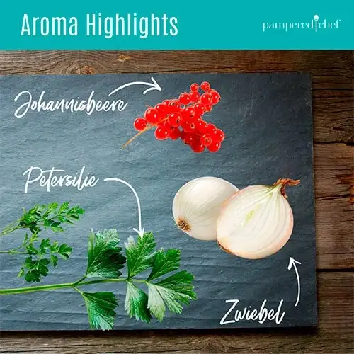 - Aroma-Highlights: Zwiebel · Petersilie · Johannisbeere