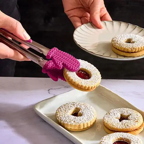 Ob beim Familienessen, Brunch oder Buffet: Mit der Mini Handschuh Zange Berry portionierst du sauber, richtest appetitlich an und hältst die Küche aufgeräumt. Der Handschuh-Look passt perfekt in die Winterzeit – ein charmanter Helfer am Plätzchenteller für Zimtsterne, Vanillekipferl & Co., ebenso für herzhafte Häppchen bei Advents- und Weihnachtsbuffets. Der „Berry“-Farbakzent harmoniert mit Tableware und Stoneware von Pampered Chef.