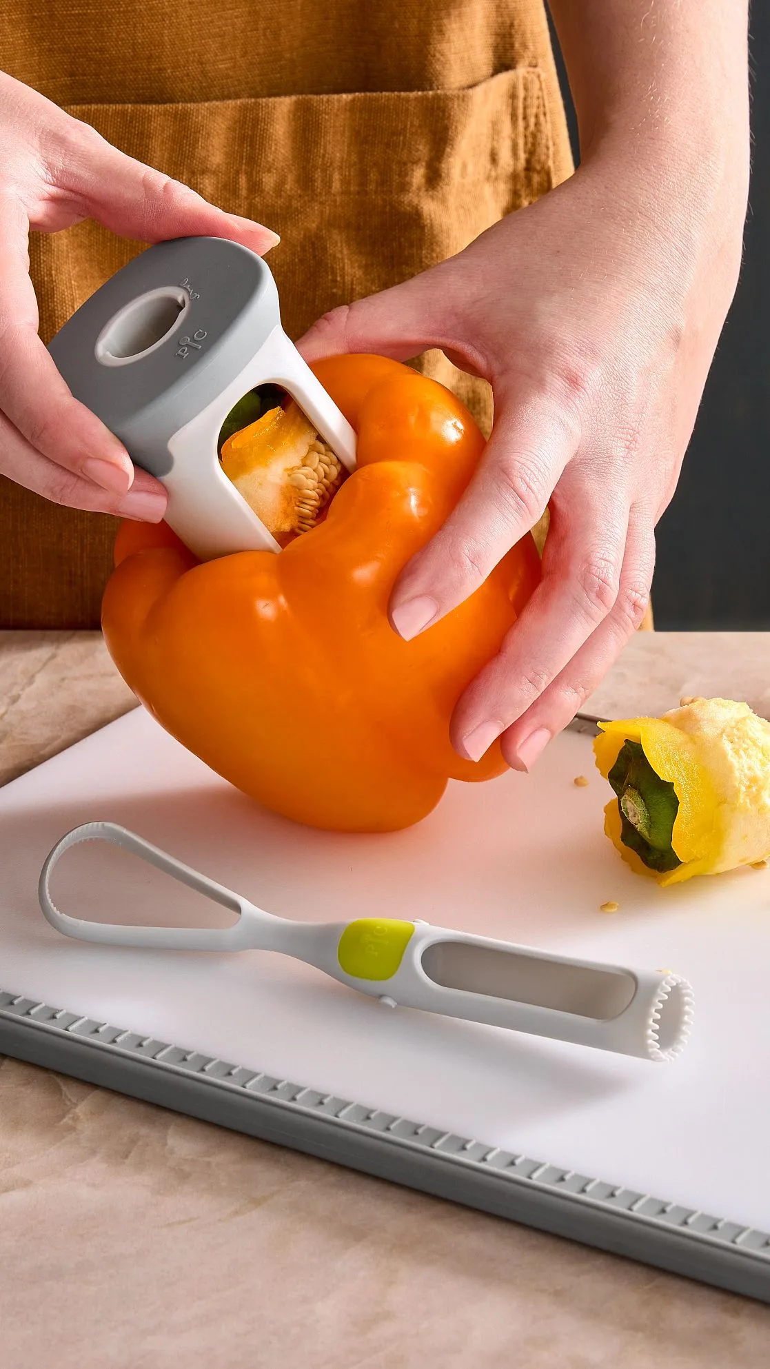 Das Paprika-Entkerner-Set von Pampered Chef enthält zwei Werkzeuge mit unterschiedlichen Funktionen – perfekt aufeinander abgestimmt:
